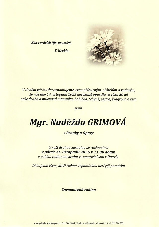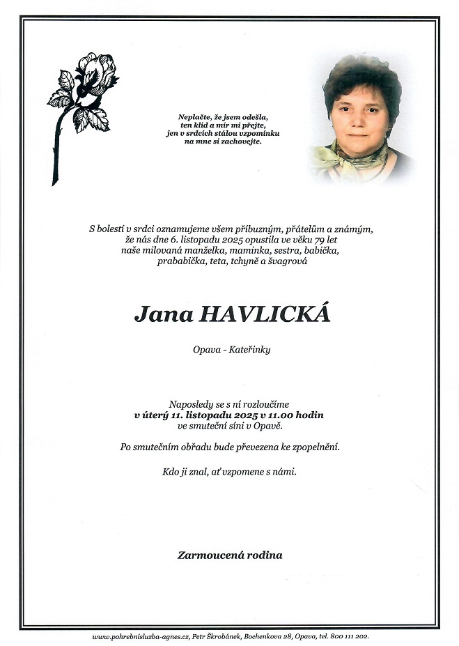 Listopad 2025 | Pohřební služba St. Agnes, Bílovec, Opava, Hradec nad Moravicí, Studénka, Příbor, Fulnek