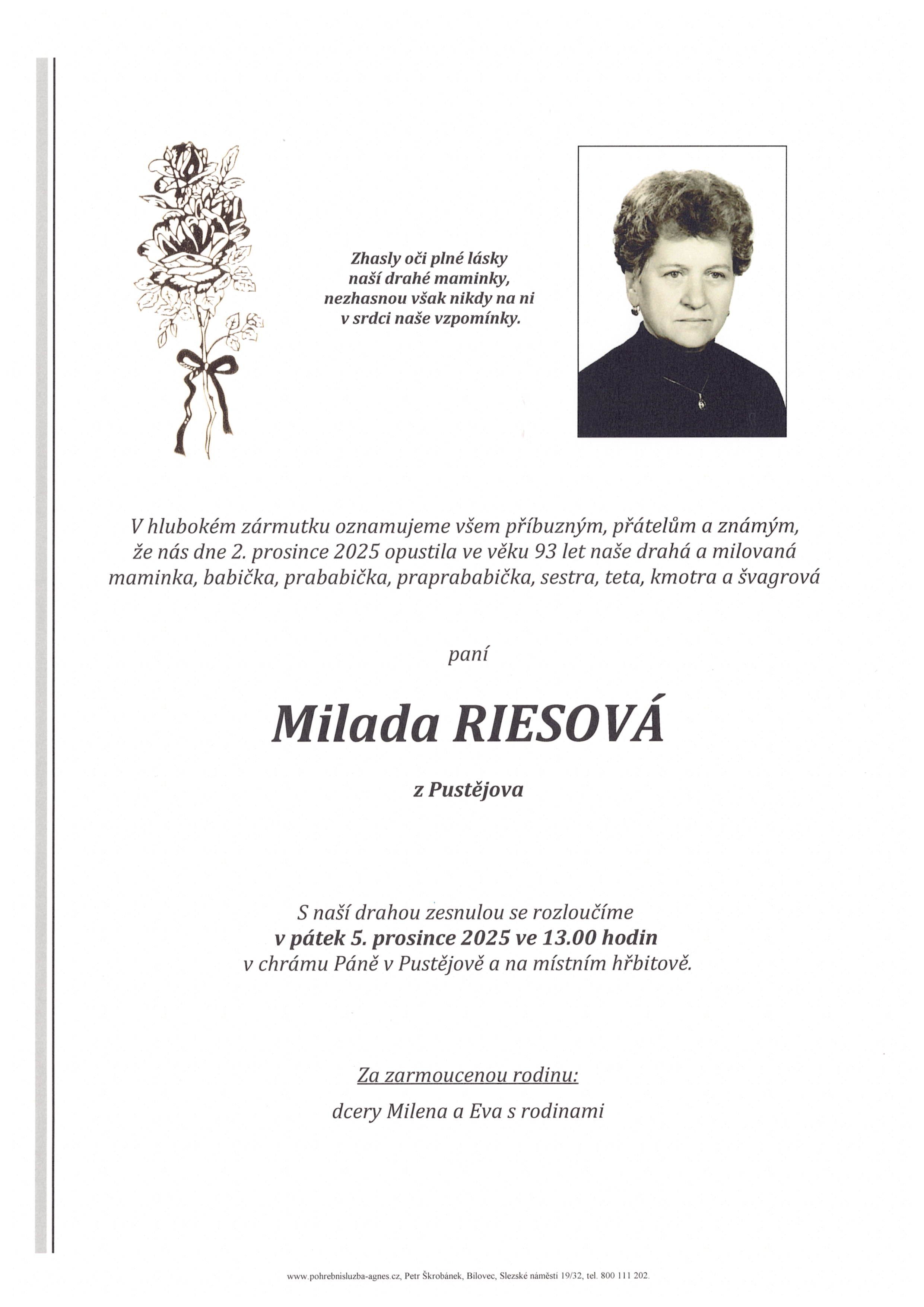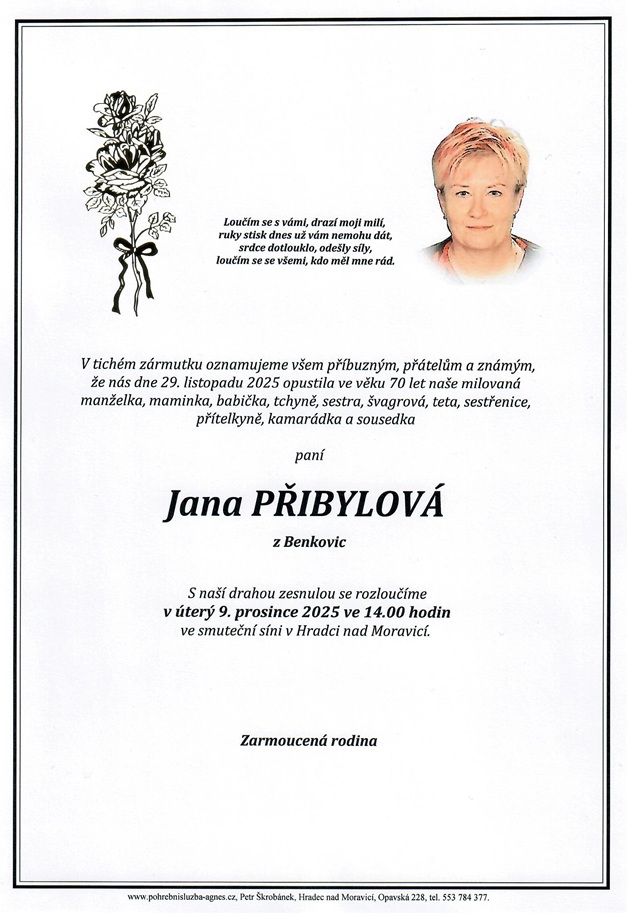 Přehled pohřbů a rozloučení obsahuje pouze ty obřady, u kterých objednavatel vyjádřil souhlas s uveřejněním.