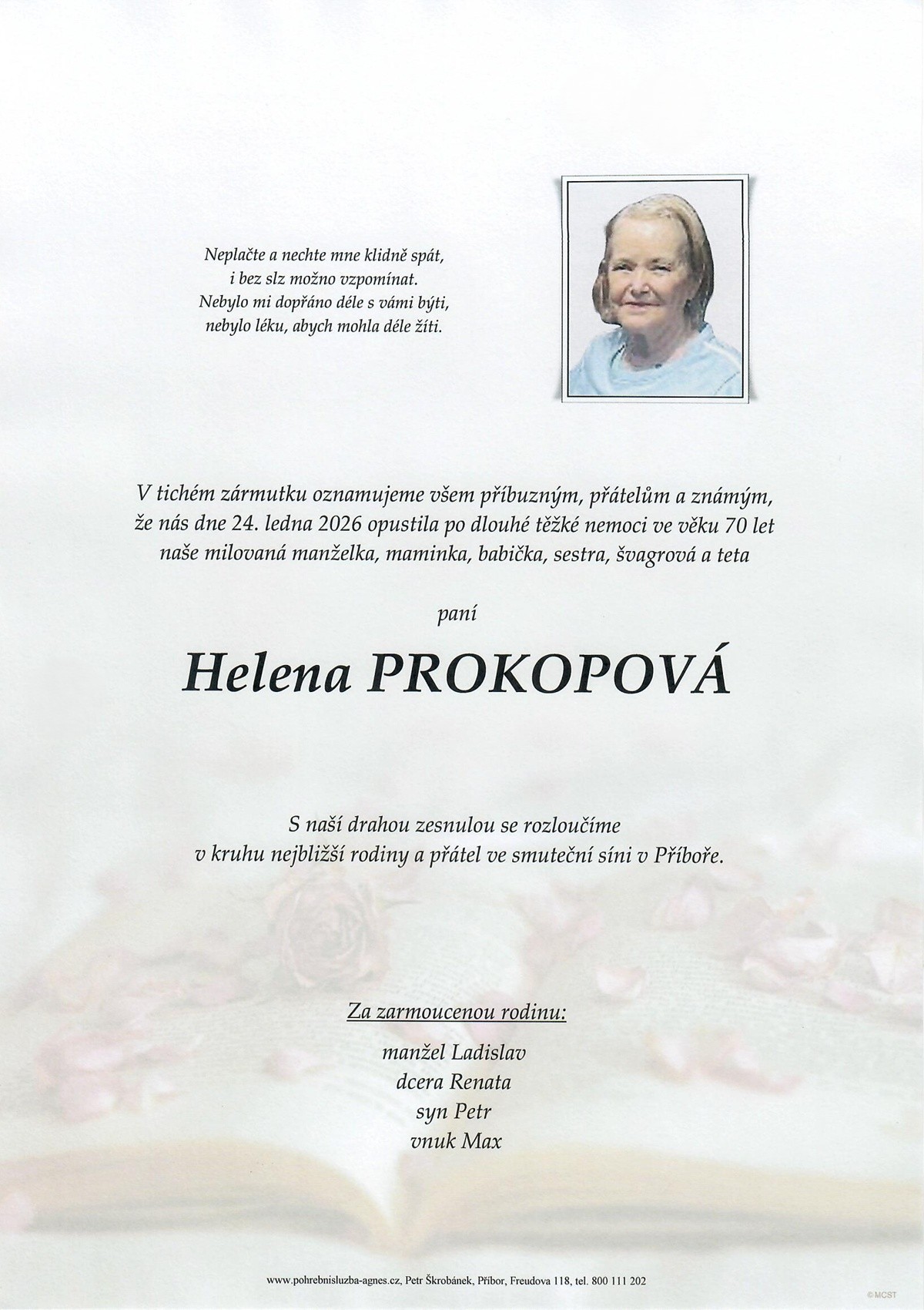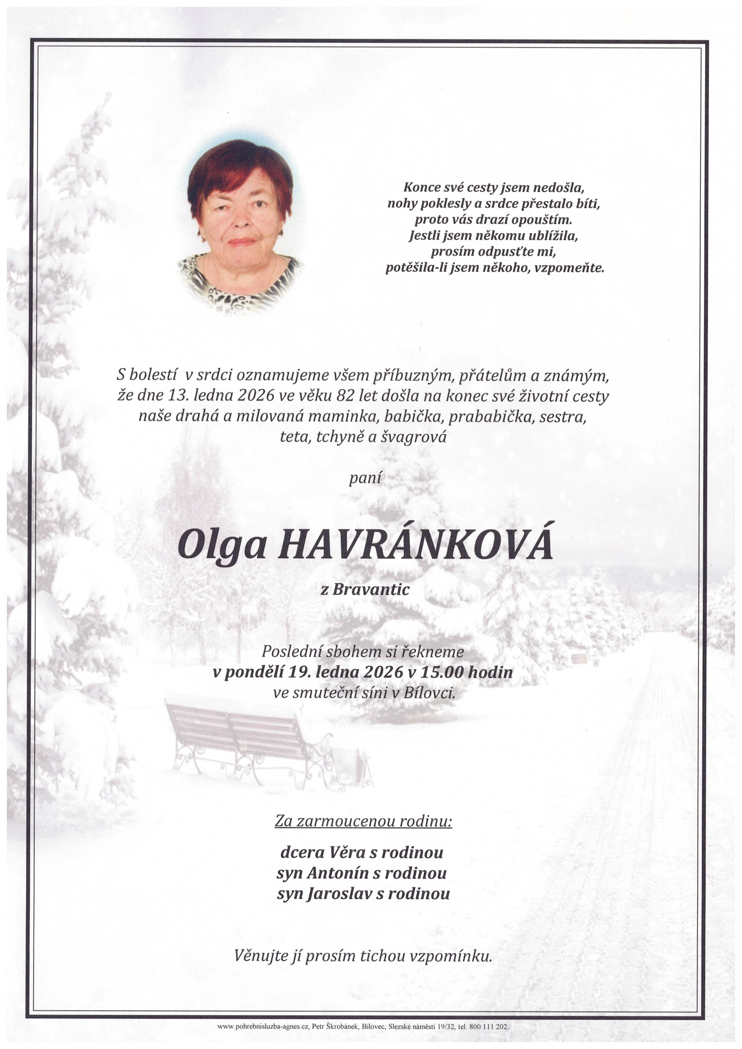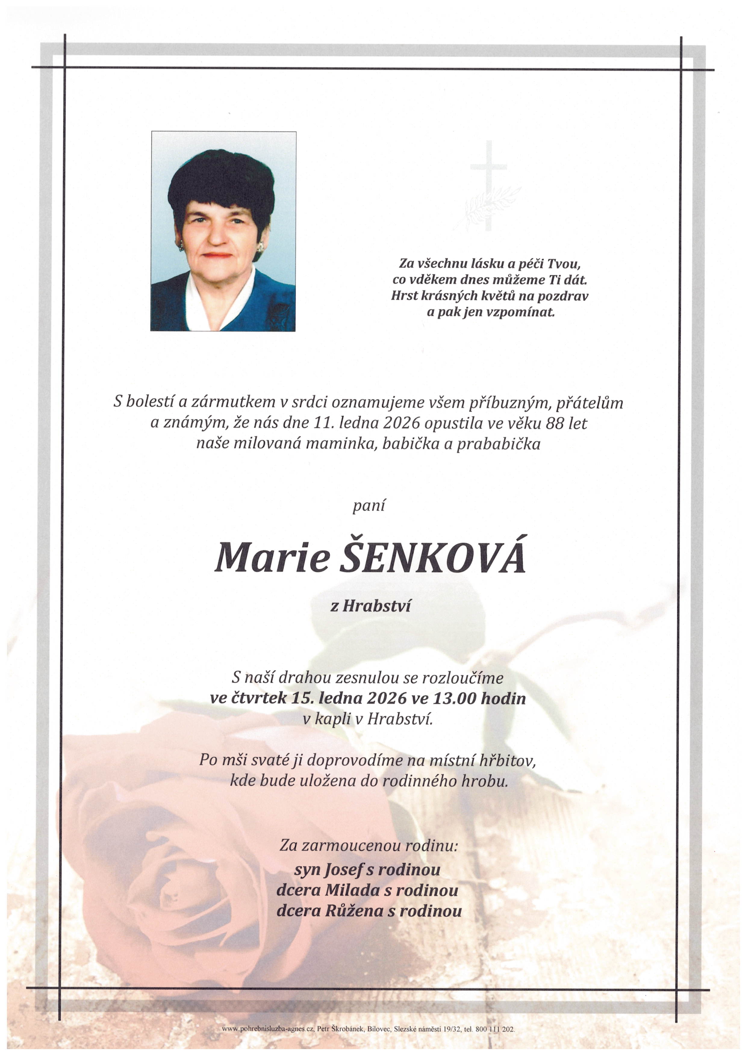 Leden 2026 | Pohřební služba St. Agnes, Bílovec, Opava, Hradec nad Moravicí, Studénka, Příbor, Fulnek