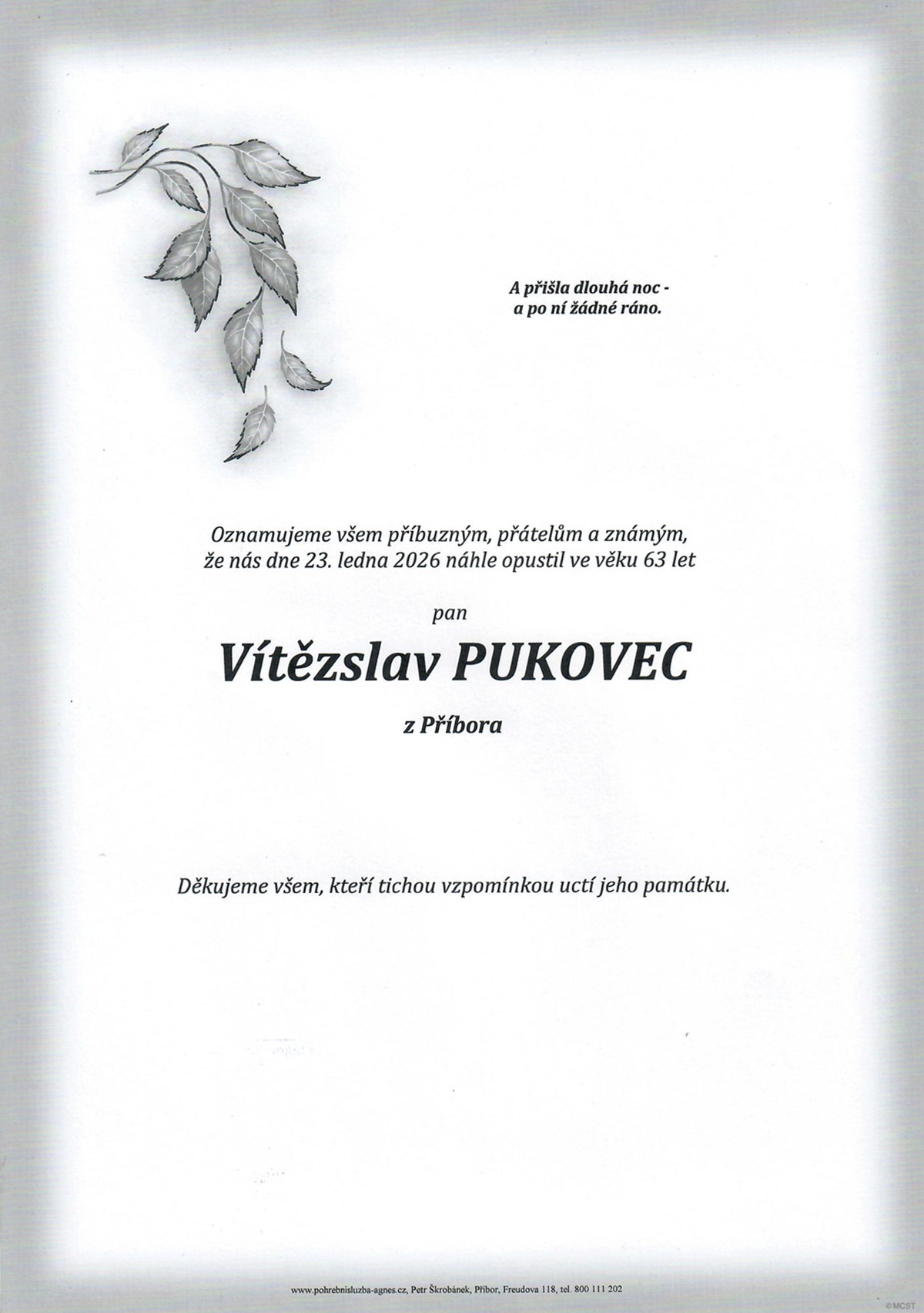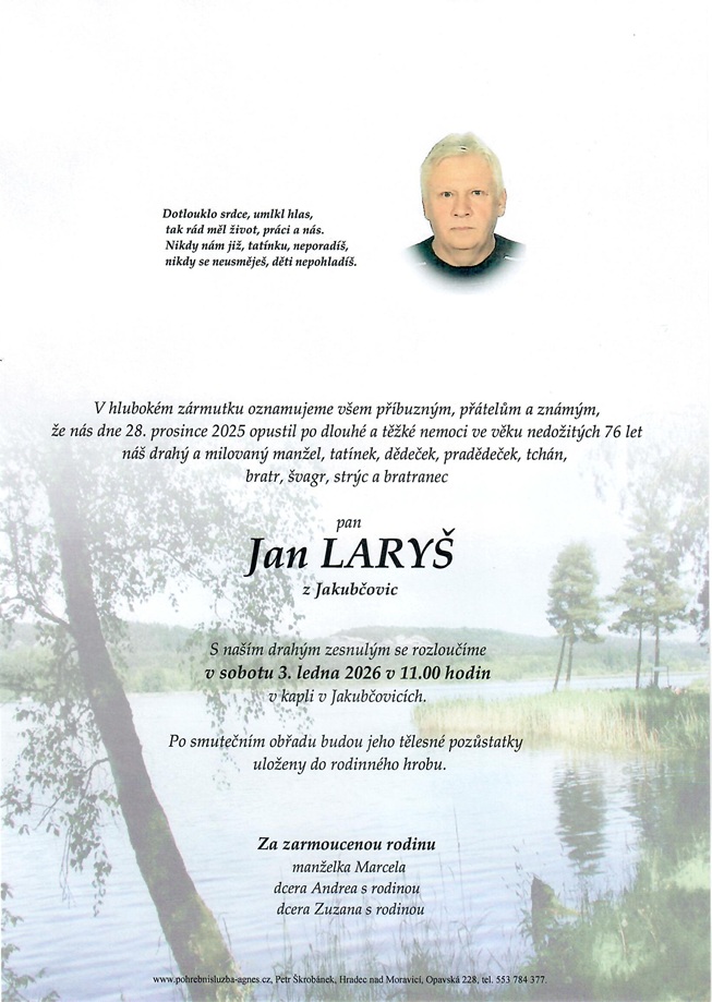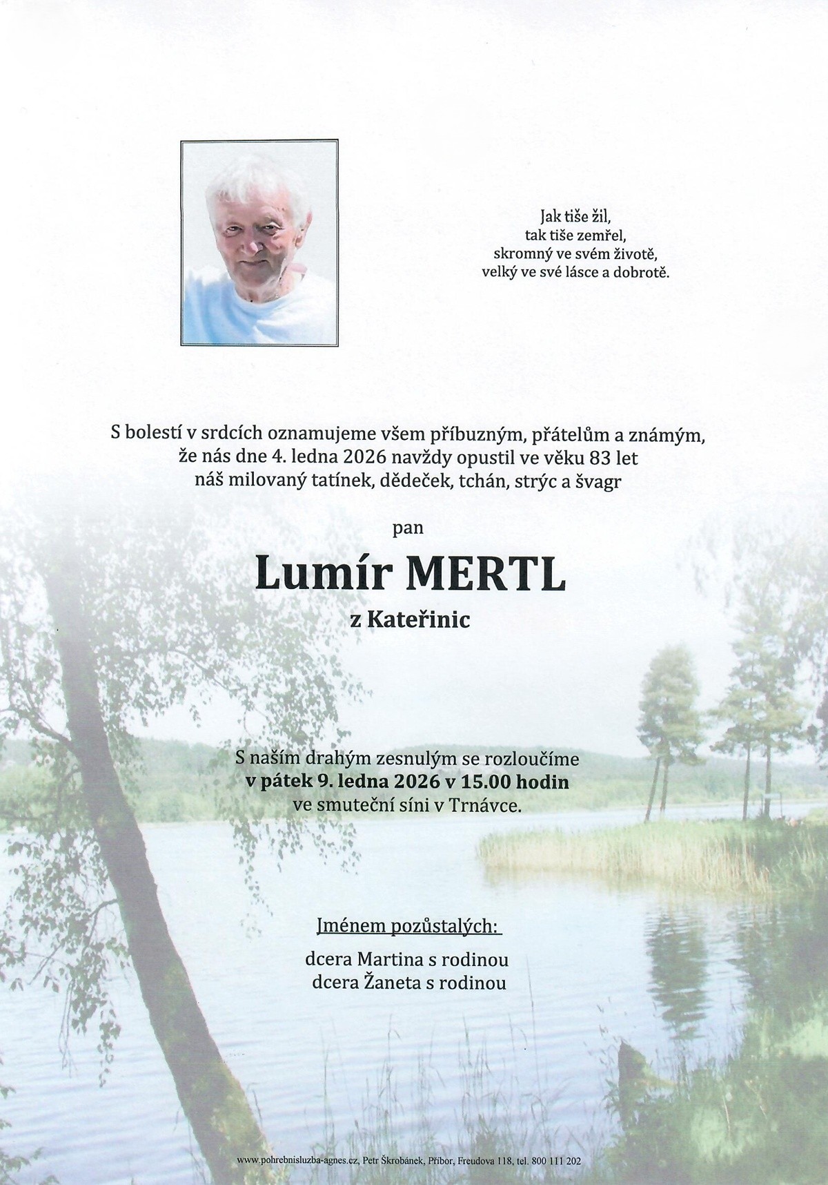 Leden 2026 | Pohřební služba St. Agnes, Bílovec, Opava, Hradec nad Moravicí, Studénka, Příbor, Fulnek