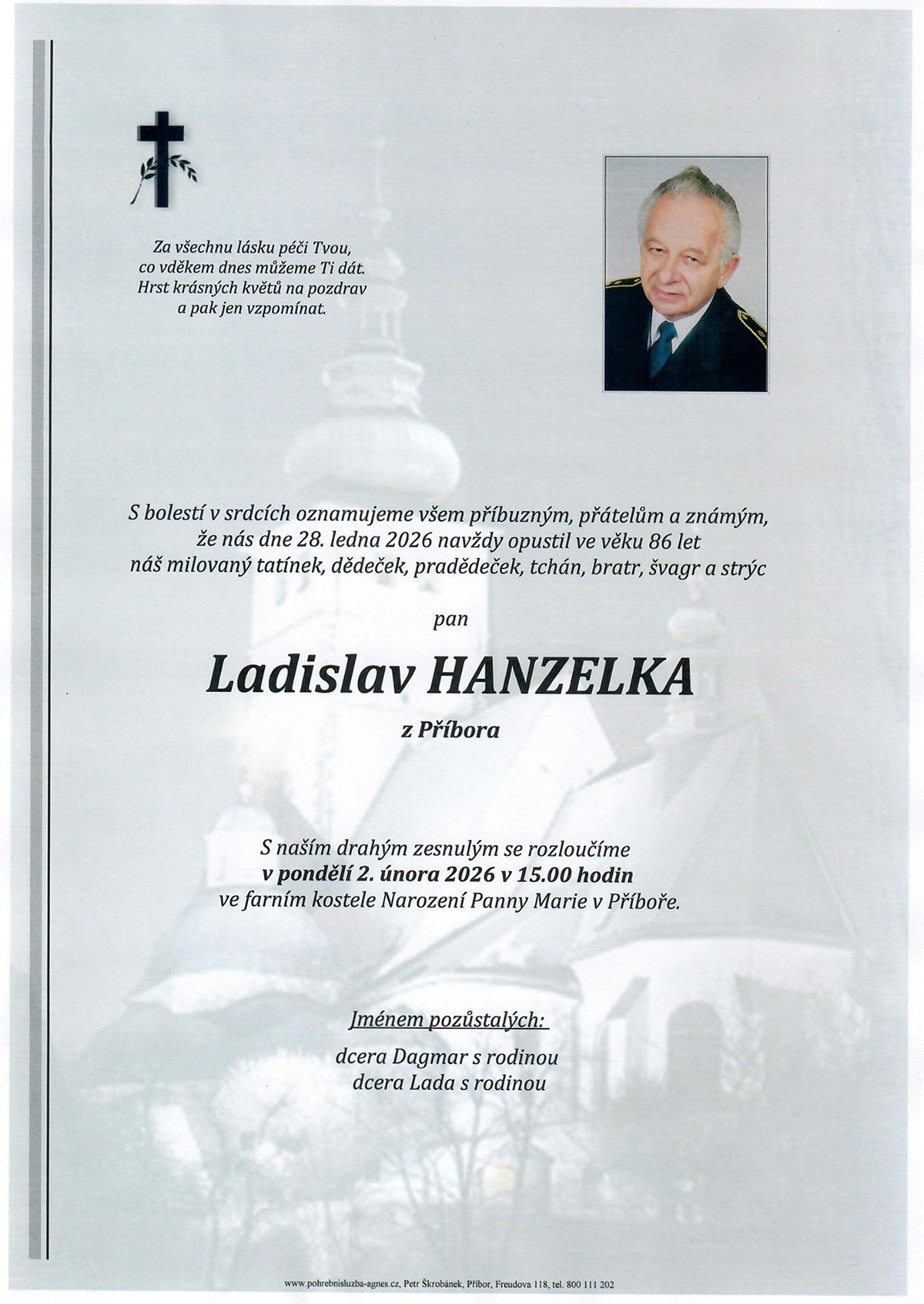 15.00 hodin Kostel Příbor - Ladislav Hanzelka, 86 let